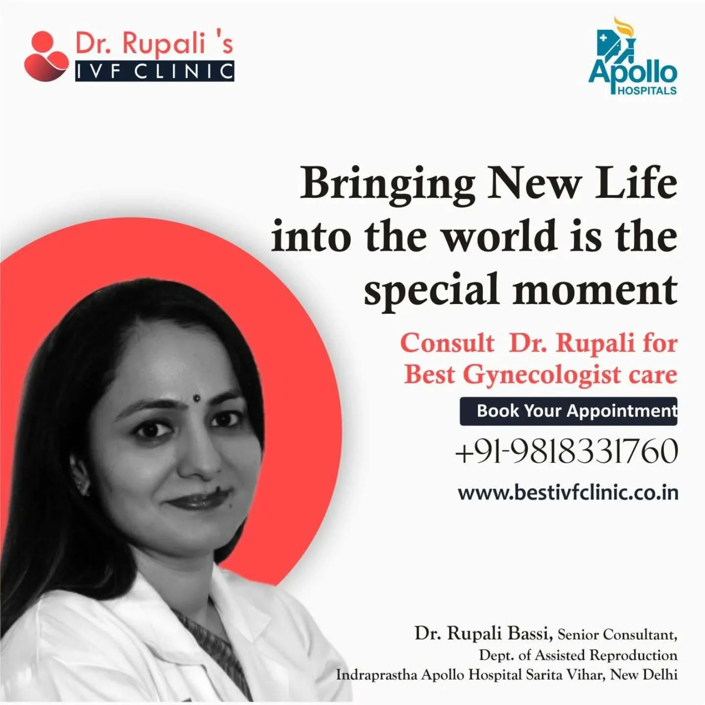 Practicing at Indraprastha Apollo Hospital, Sarita Vihar, Dr. Bassi has helped countless couples achieve their dream of parenthood. Her dedication, ethical approach, and consistent success in assisted reproductive techniques have made her one of the most trusted IVF specialists in Delhi.