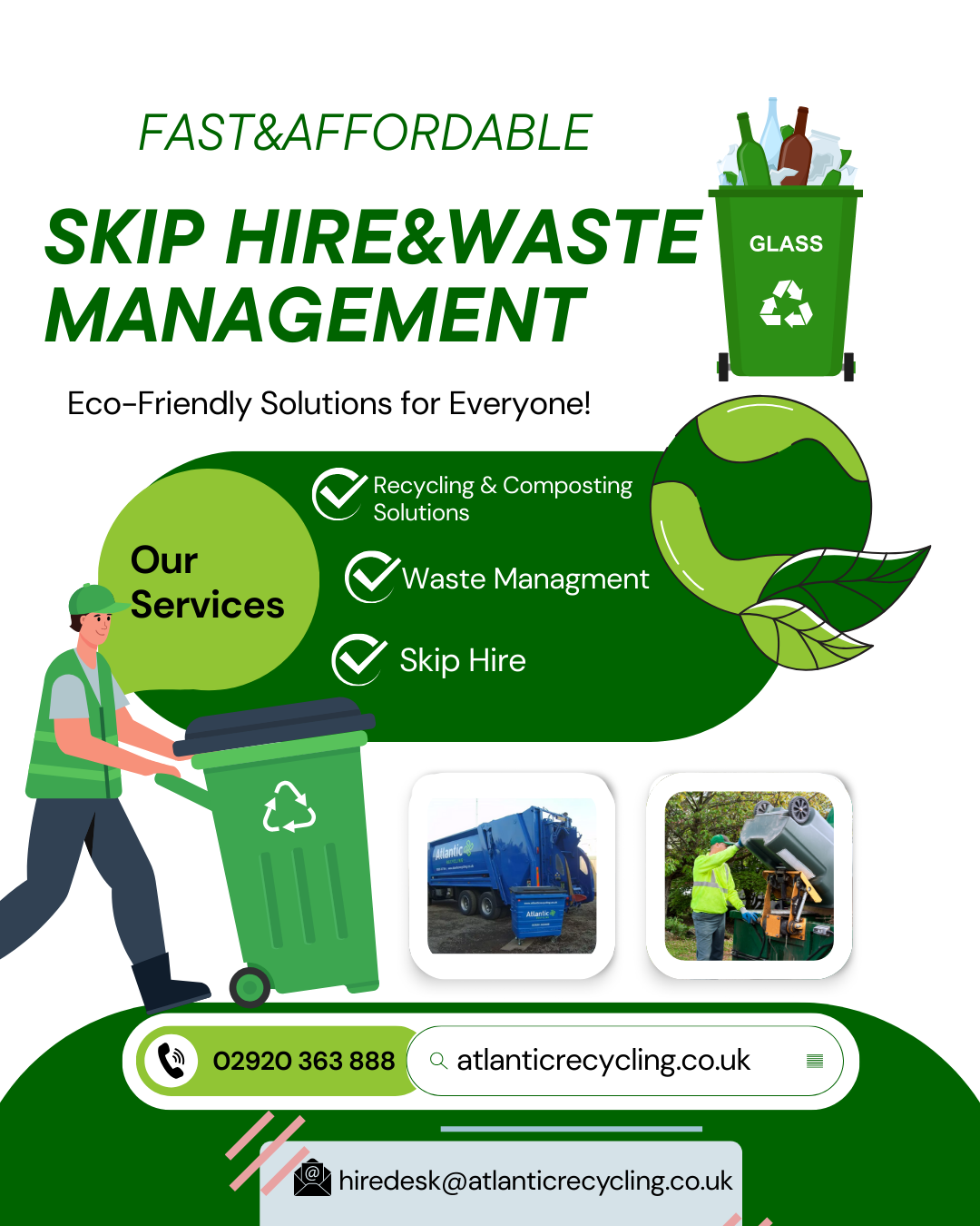 Atlantic Recycling provides professional skip hire in Cardiff, Caerphilly, Newport, Barry, Bridgend, and Swansea. We offer reliable domestic and commercial waste collection, responsible recycling, and eco-friendly solutions. From home clear-outs to construction projects, our services make waste management simple, efficient, and environmentally responsible for homes and businesses across South Wales.Atlantic Recycling provides professional skip hire in Cardiff, Caerphilly, Newport, Barry, Bridgend, and Swansea. We offer reliable domestic and commercial waste collection, responsible recycling, and eco-friendly solutions. From home clear-outs to construction projects, our services make waste management simple, efficient, and environmentally responsible for homes and businesses across South Wales.0 Comentarios 0 Acciones 51 Vistos 0 Reseñas¡Inicia sesión para dar me gusta, compartir y comentar!