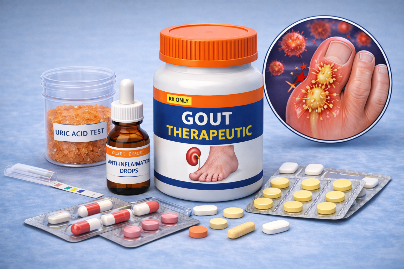 The therapeutic landscape for gout includes several drug classes, each targeting a different aspect of the disease: non-steroidal anti-inflammatory drugs (NSAIDs), corticosteroids, colchicine for inflammation control, and urate-lowering agents that reduce serum uric acid. This diversified portfolio is essential to address both immediate flare-ups and long-term disease control.