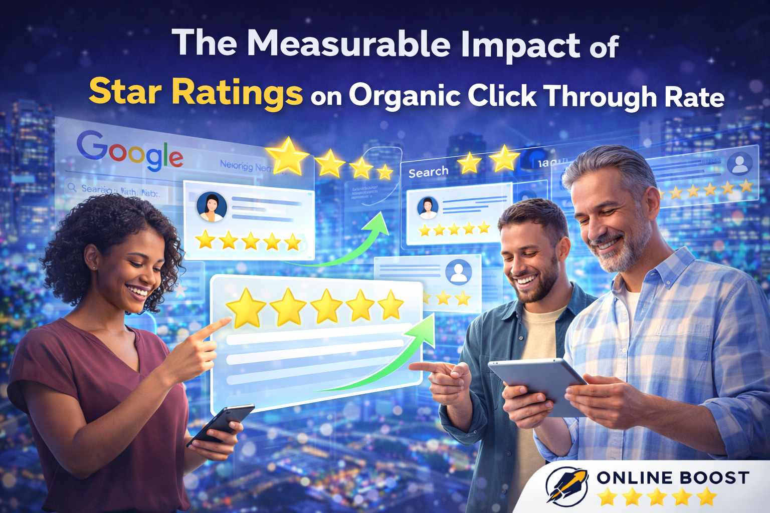 The evidence is clear: Star ratings influence click through rate in predictable and measurable ways. They enhance visibility, build immediate trust, and create competitive differentiation inside Google search results.