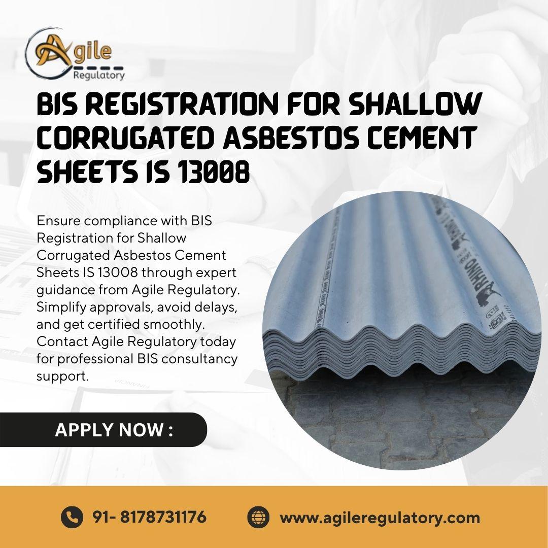 Partnering with experienced consultants ensures that manufacturers avoid costly delays and remain focused on production and business expansion. With proper guidance, securing BIS Registration for Shallow Corrugated Asbestos Cement Sheets IS 13008 becomes efficient and hassle-free.