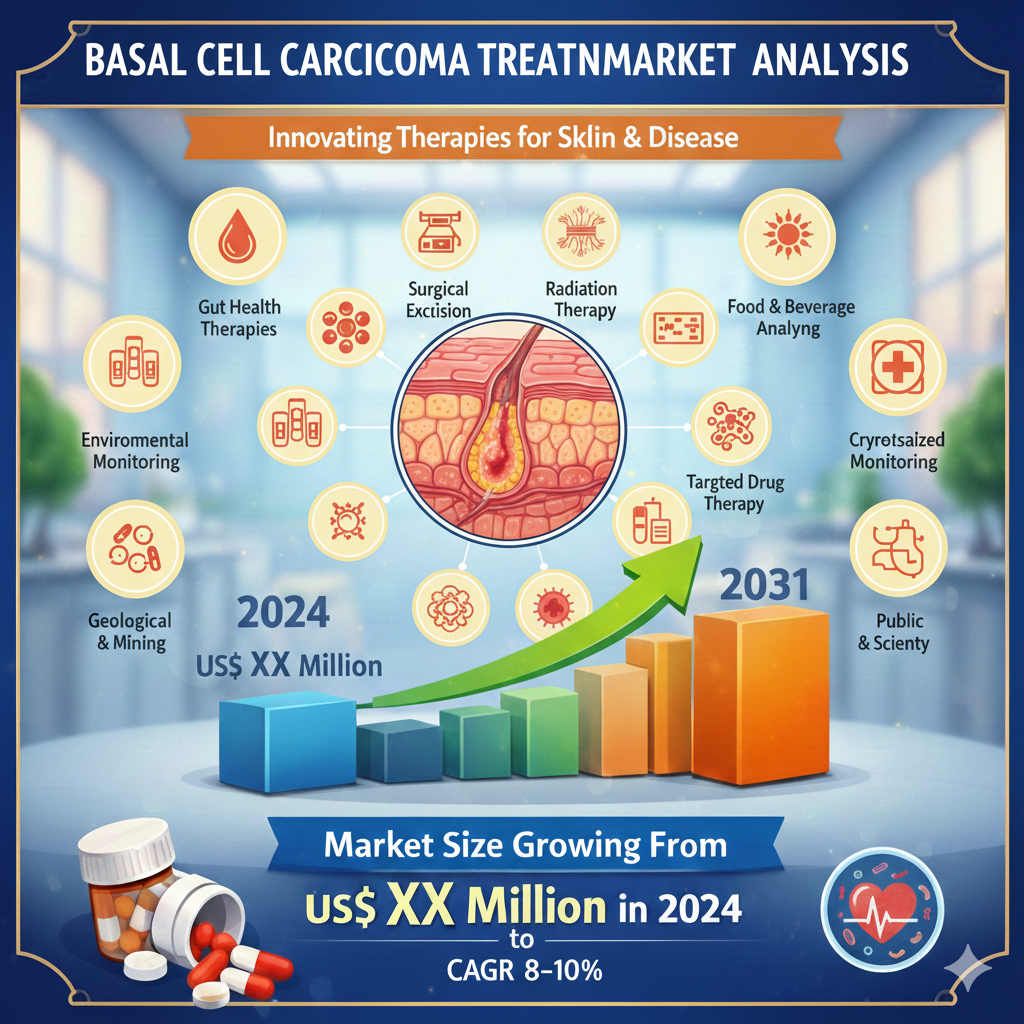 The Basal Cell Carcinoma Treatment Market is expected to register a CAGR of 9.3% from 2025 to 2031, with market size rising from US$ XX million in 2024 to US$ XX Million by 2031. The market reflects strong clinical demand driven by technological progress, expanding healthcare infrastructure, and rising oncology-focused investments across developed and emerging economies.