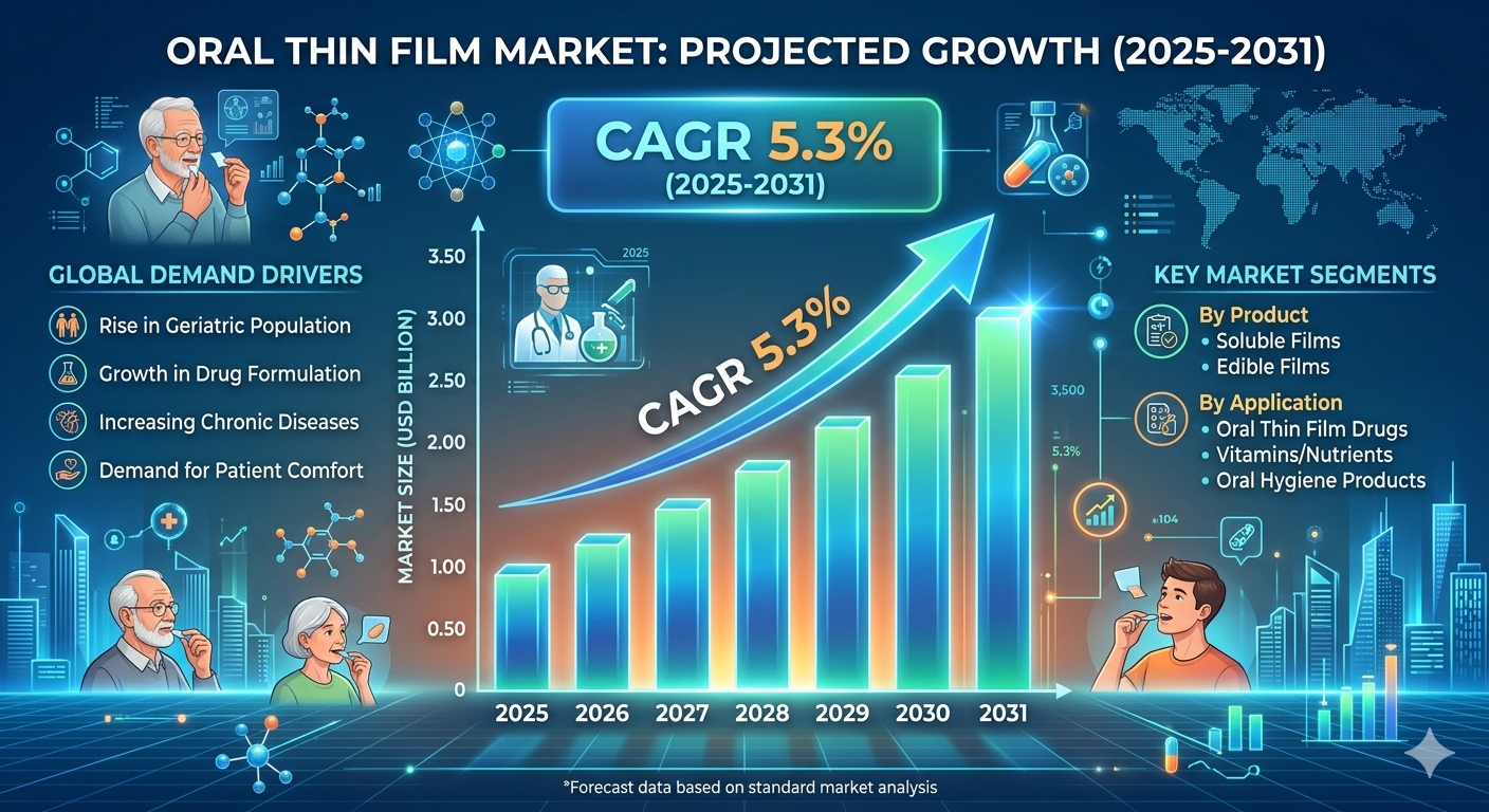 The Oral Thin Film Market is advancing as healthcare shifts toward faster, patient-friendly drug delivery formats. With a projected CAGR of 5.3% from 2025 to 2031, the market is gaining traction through innovation in dissolvable film technologies and rising demand for convenient medication solutions. Industry analysis from organizations like The Insight Partners highlights sustained adoption across therapeutic applications and consumer health products.
