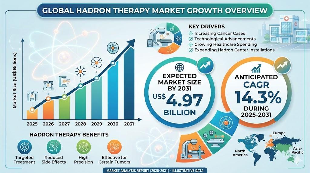 The Hadron Therapy Market size is expected to reach US$ 4.97 Billion by 2031. The market is anticipated to register a CAGR of 14.3% during 2025 to 2031. Rapid technological advancements in radiation therapy systems and growing investments in oncology research are playing an important role in accelerating adoption across healthcare institutions worldwide.
