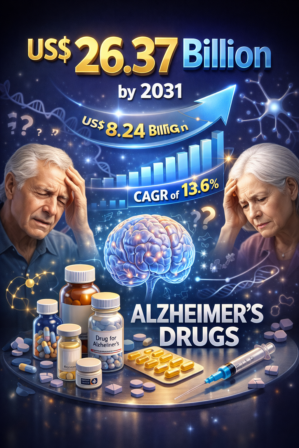 Overall, the Alzheimer’s drugs market is expected to witness strong growth in the coming years. According to industry estimates, the global market is projected to reach approximately US$26.37 billion by 2031, driven by advancements in drug development, increasing prevalence of Alzheimer’s disease, and expanding research activities focused on innovative therapies.