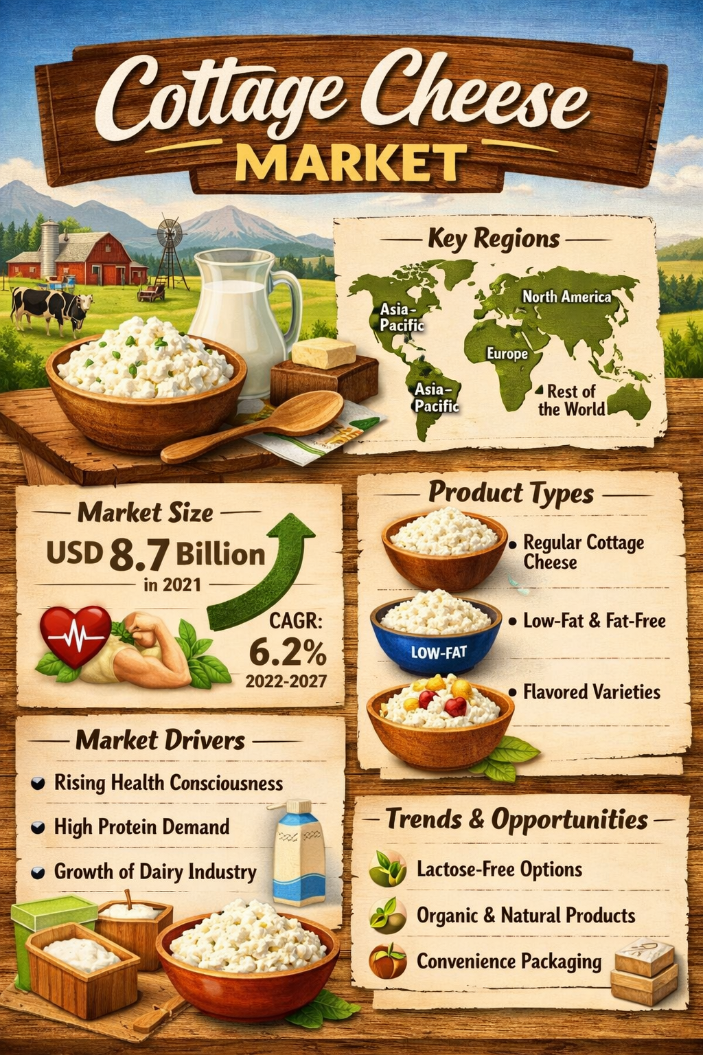 The Global Cottage Cheese Market continues to witness transformative growth as consumer preferences evolve toward health‑oriented, high‑protein dairy products. Cottage cheese once considered a traditional dairy staple has gained renewed traction, driven by rising health consciousness, diversified nutrition preferences, and innovations in product formulations and retail accessibility. As the market advances toward 2034, thorough understanding of the market report scope becomes critical for stakeholders seeking strategic insights on segmentation, regional dynamics, competitive landscapes, and future growth drivers.
