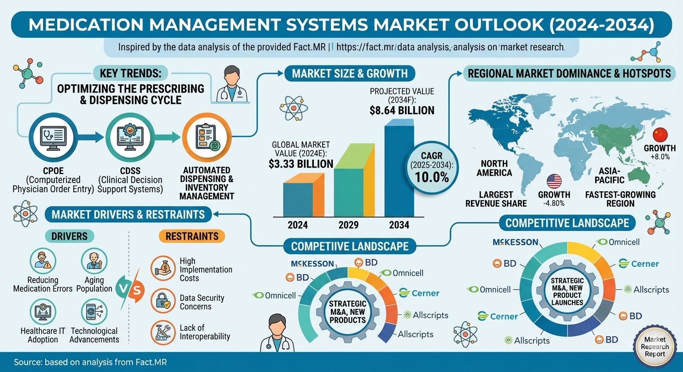 The global medication management systems market is on a high-growth trajectory, projected to soar from USD 3.9 billion in 2025 to USD 10.1 billion by 2035. According to a comprehensive industry analysis by Fact.MR, the market will expand at a double-digit compound annual growth rate (CAGR) of 10.0% over the next decade. This surge is primarily fueled by a global push to eliminate medication errors, the rapid digitalization of hospital workflows, and the integration of artificial intelligence (AI) into clinical decision-making.