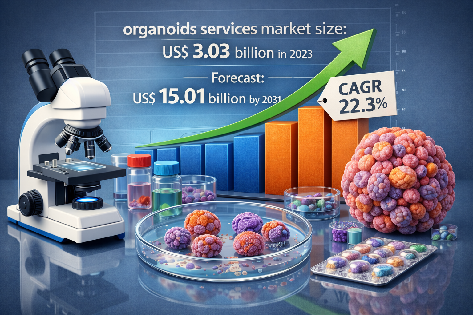 The biotechnology sector is witnessing a paradigm shift in how drug discovery and disease modeling are conducted. As pharmaceutical companies strive to reduce high attrition rates in clinical trials, the Organoids Services Market has emerged as a vital pillar of the modern life sciences ecosystem. According to the latest comprehensive research by The Insight Partners, the global Organoids Services Market Scope is projected to reach a valuation of US$ 15.01 billion by 2031, growing from US$ 3.03 billion in 2023. This represents a remarkable compound annual growth rate (CAGR) of 22.3% during the forecast period. Factors contributing to the organoids services market growth include the rising demand for novel drug screening services, and an upsurge in the popularity of customized medications. However, the dearth of skilled professionals and stringent safety regulations hamper the market growth.