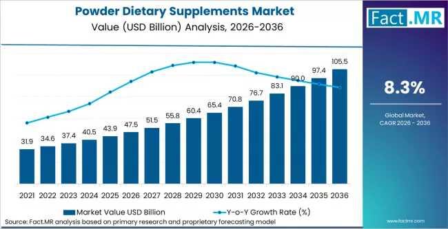 Powder Dietary Supplements Industry Forecast: USD 105.53 Billion Market by 2036 at 8.3% CAGR