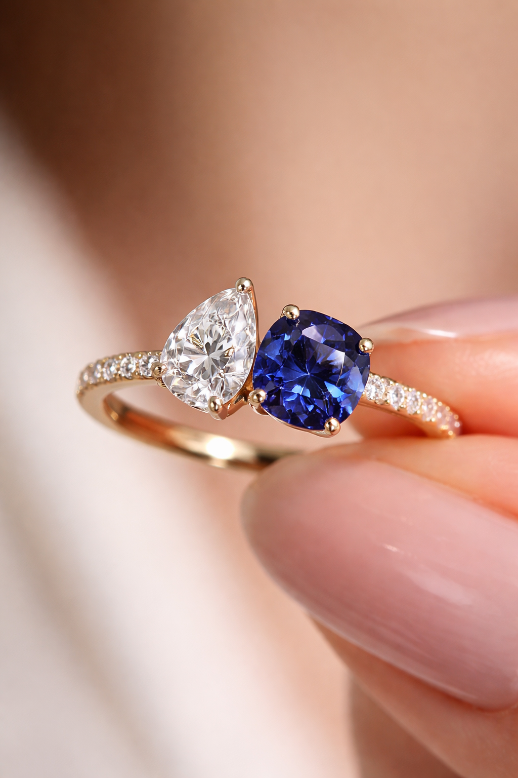 From affordable lab-grown toi et moi ring options to luxurious natural diamond pieces, this style resonates with couples who want something deeply personal.