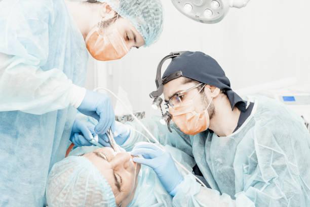 An endoscope is used to examine the nasal cavity and make the surgical field visible to the surgeon.
