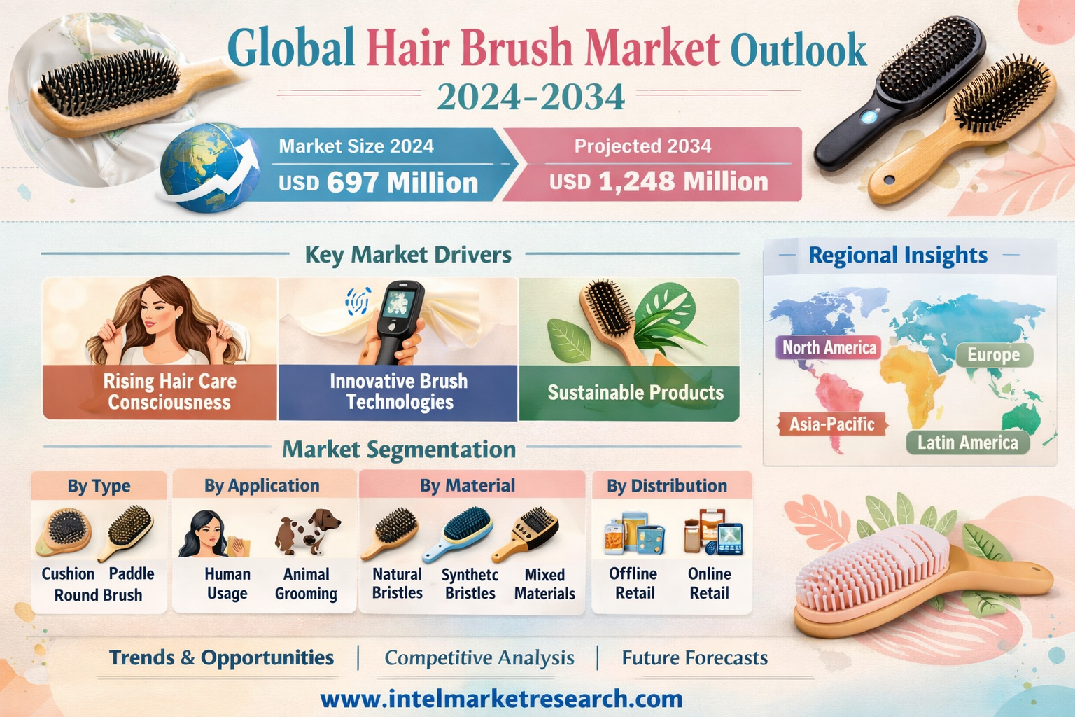 According to a new report from Intel Market Research, the global Hair Brush market was valued at USD 697 million in 2024 and is projected to reach USD 1,248 million by 2034, growing at a CAGR of 8.9% during the forecast period (2025-2034). This growth is driven by increasing consumer focus on personal grooming, rising disposable incomes, and technological innovations in brush materials and designs.