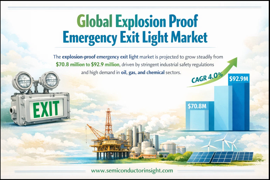 Global Explosion Proof Emergency Exit Light Market, valued at US$ 70.8 million in 2024, demonstrates steady growth projections to reach US$ 92.9 million by 2032, advancing at a compound annual growth rate (CAGR) of 4.0%. This expansion is detailed in a comprehensive new report published by Semiconductor Insight, highlighting the critical role of these specialized safety devices in ensuring compliance and protection within hazardous industrial environments.