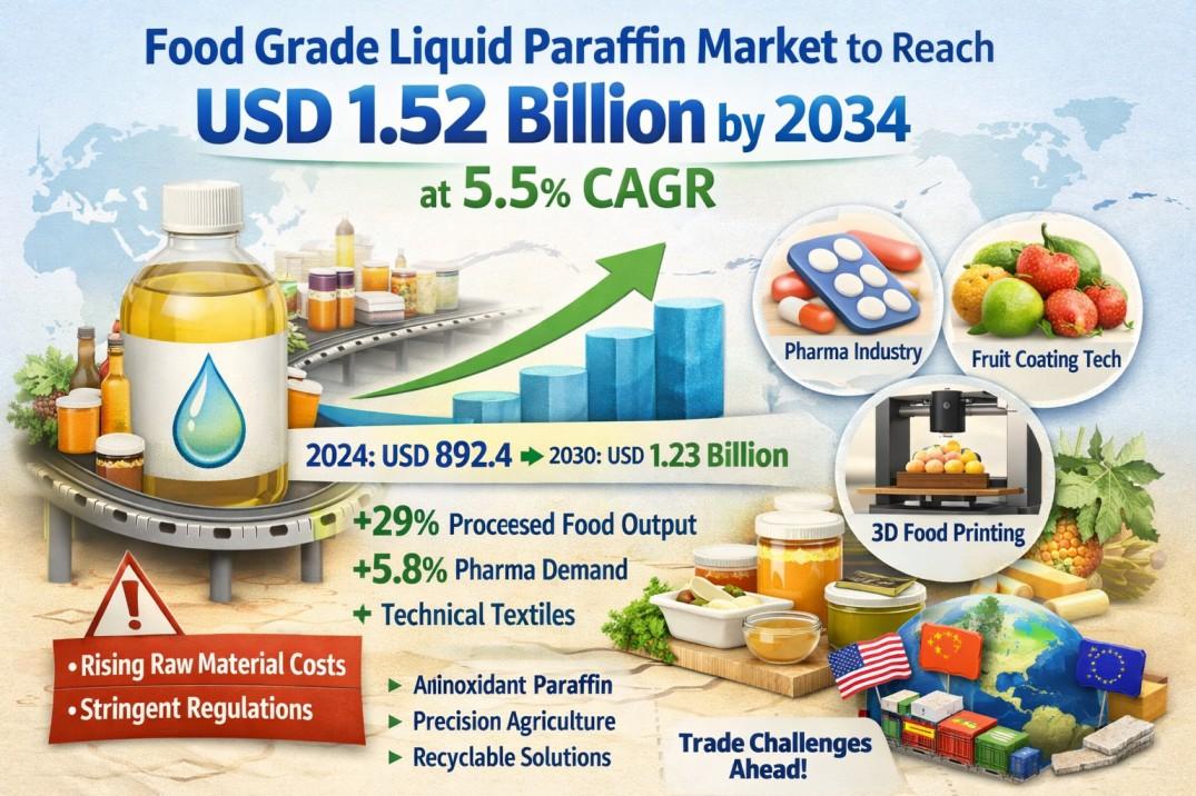 Food Grade Liquid Paraffin Market to Reach USD 1.52 Billion by 2034 at 5.5% CAGR