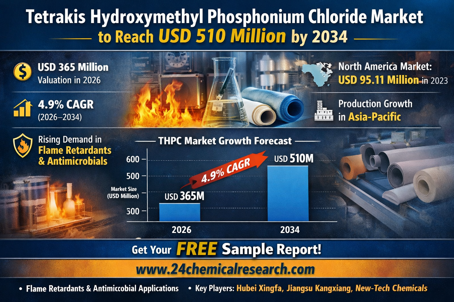 Global Tetrakis Hydroxymethyl Phosphonium Chloride (THPC) market continues to demonstrate steady growth, with its valuation reaching USD 365 million in 2026. According to the latest industry analysis, the market is projected to grow at a CAGR of 4.9%, reaching approximately USD 510.18 million by 2034. This growth is largely fueled by increasing applications in flame retardants and preservatives across multiple industries.