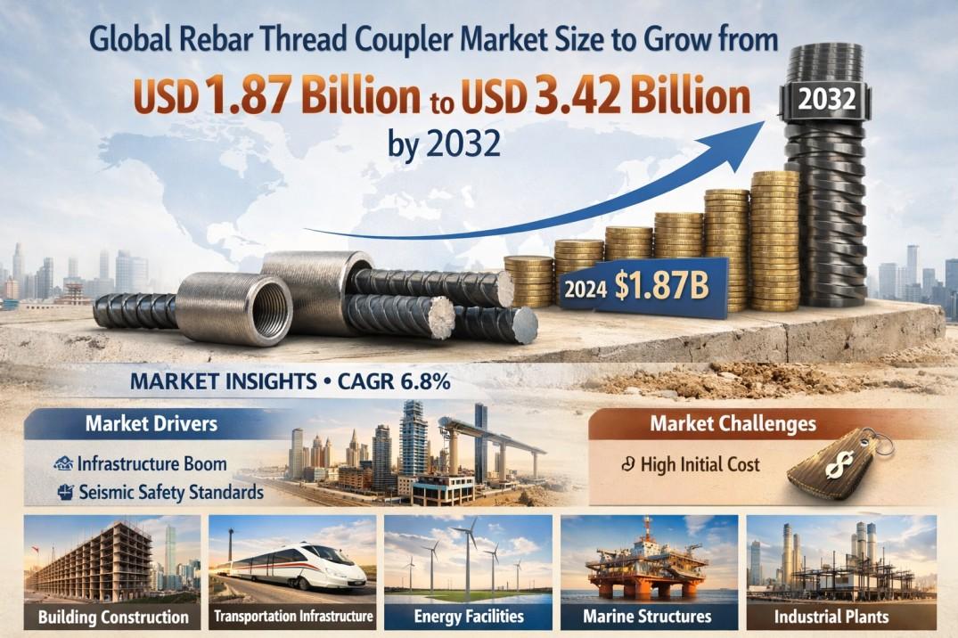 Global Rebar Thread Coupler Market Size to Grow from USD 1.87 Billion to USD 3.42 Billion by 2032