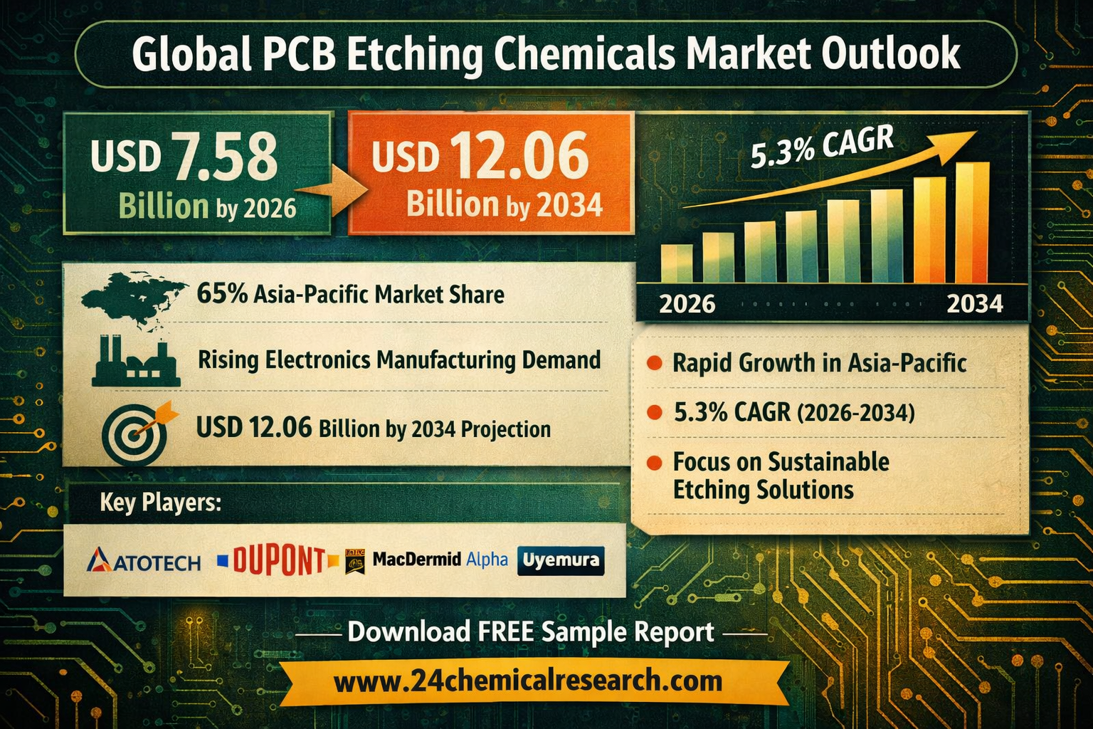 Global PCB Etching Chemicals Market to Reach USD 12.06 Billion by 2034, Driven by 5.3% CAGR and Rising Asia-Pacific Electronics Manufacturing Demand
