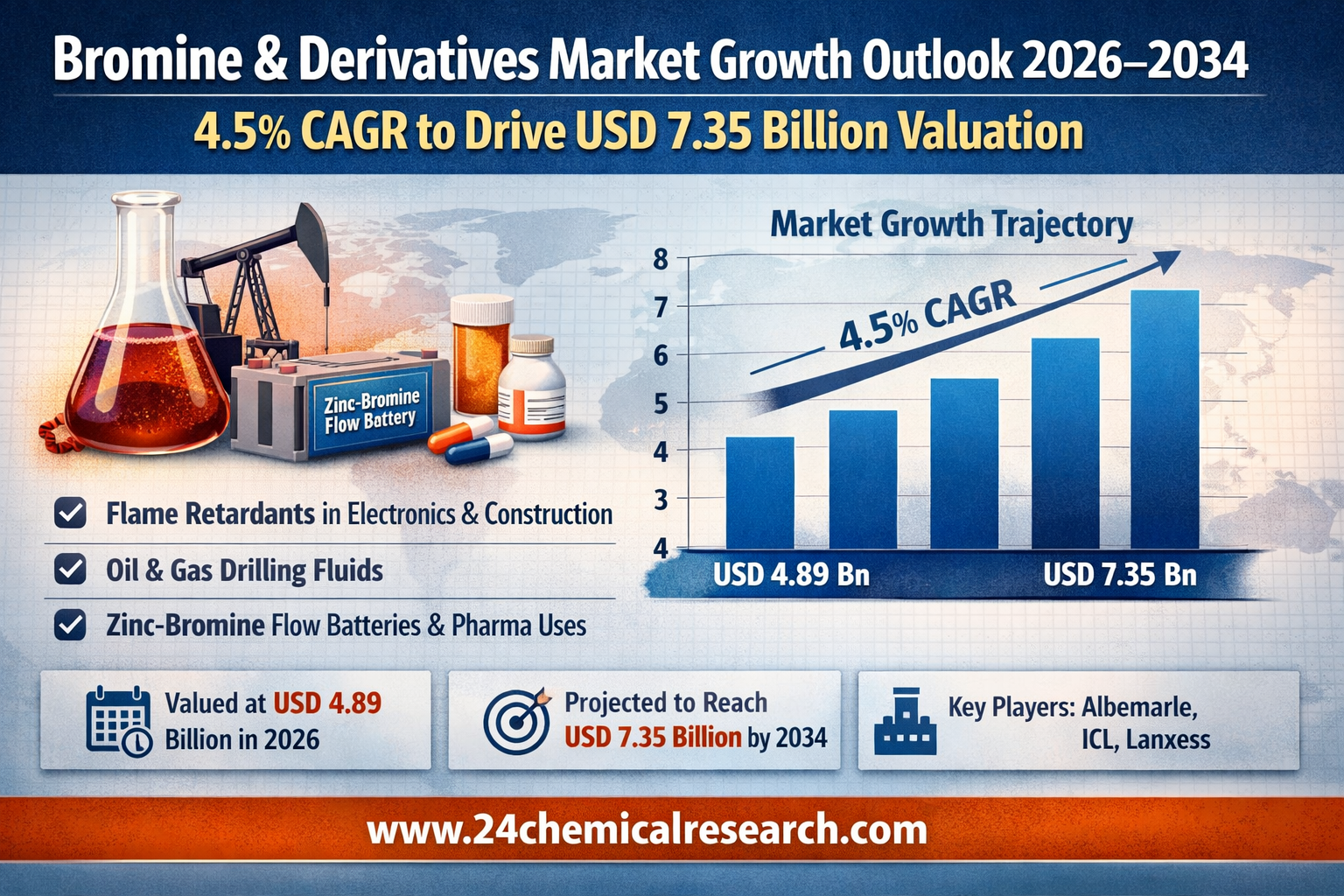 Bromine and Derivatives Market Growth Outlook 2026–2034: 4.5% CAGR to Drive USD 7.35 Billion Valuation