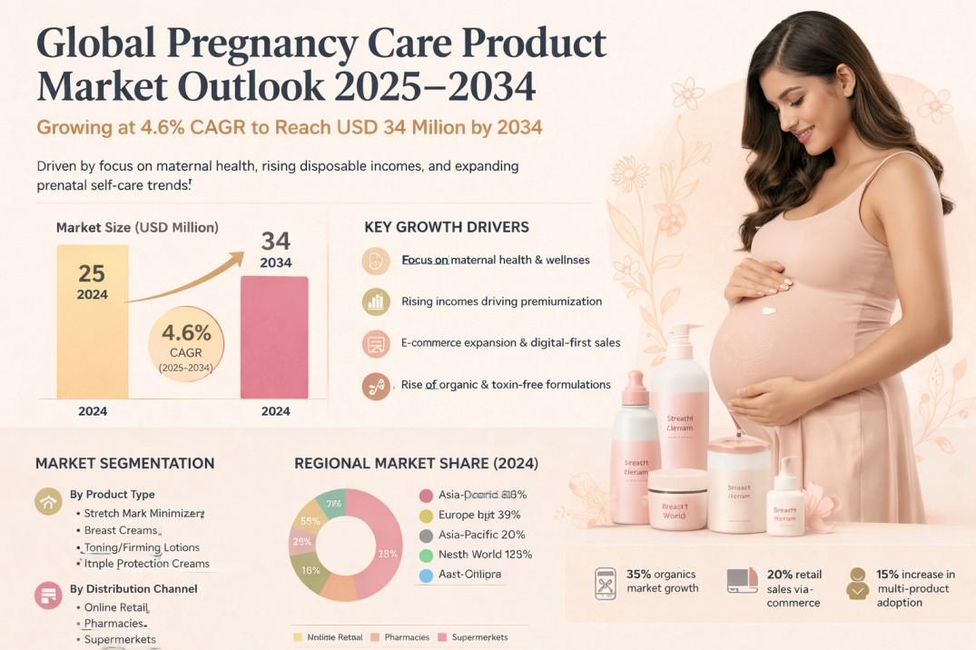 Pregnancy Care Product Market to Grow at 4.6% CAGR from 2025 to 2034 Driven by Prenatal Self-Care Demand