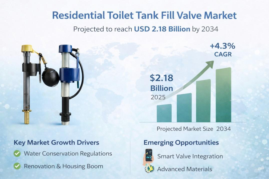 Global Residential Toilet Tank Fill Valve Market to Grow at 4.3% CAGR, Reaching USD 2.18 Billion by 2034