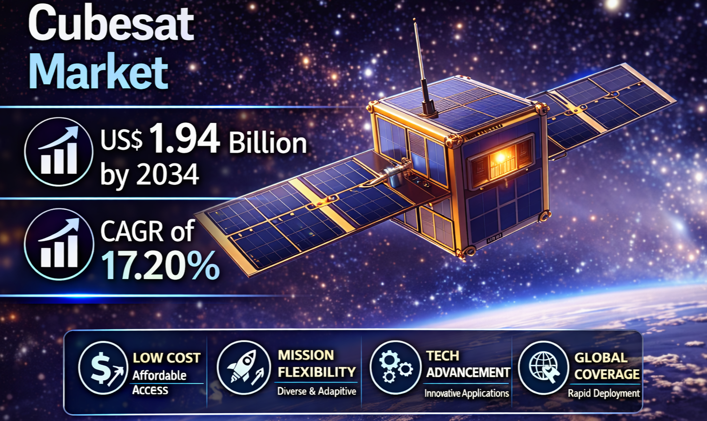 The economic potential of this sector is immense. The Cubesat Market is projected to reach US$ 385.60 Billion in 2025 and is expected to reach US$ 1.94 Billion by 2034. The market is expected to register a CAGR of 17.20% during the forecast period. This steady growth trajectory is fueled by a transition from single satellite missions to large scale constellations that provide continuous global coverage.