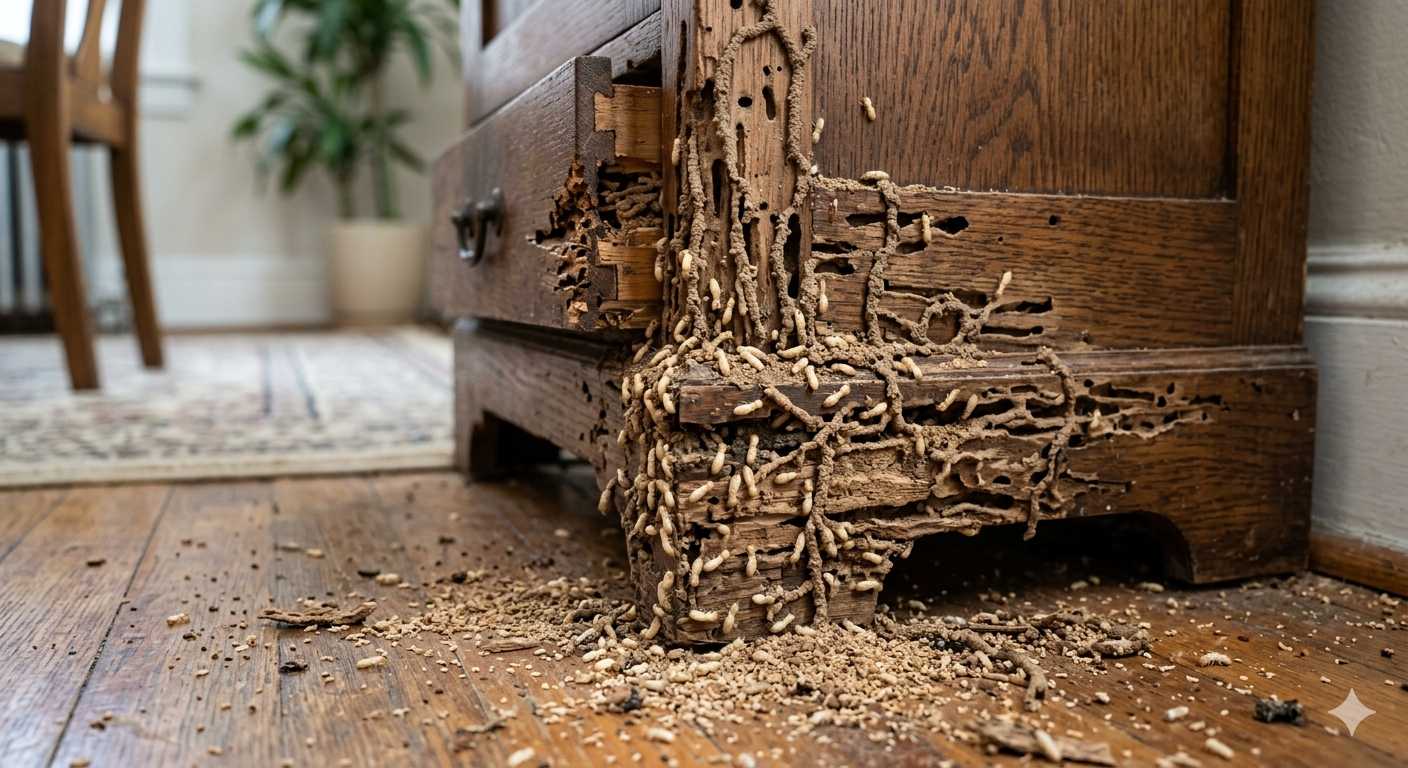 Wooden furniture, doors, and cabinets are treated with specialized chemicals that penetrate deeply and kill termites at every stage.