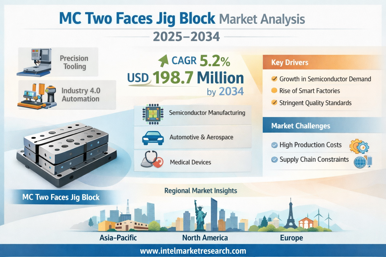 According to a new report from Intel Market Research, the global MC Two Faces Jig Block market was valued at USD 125.4 million in 2025 and is projected to grow from USD 135.8 million in 2026 to reach USD 198.7 million by 2034, exhibiting a CAGR of 5.2% during the forecast period (2026–2034). This steady growth trajectory is underpinned by the accelerating adoption of precision tooling solutions across industrial automation, CNC machining, and advanced manufacturing sectors worldwide.