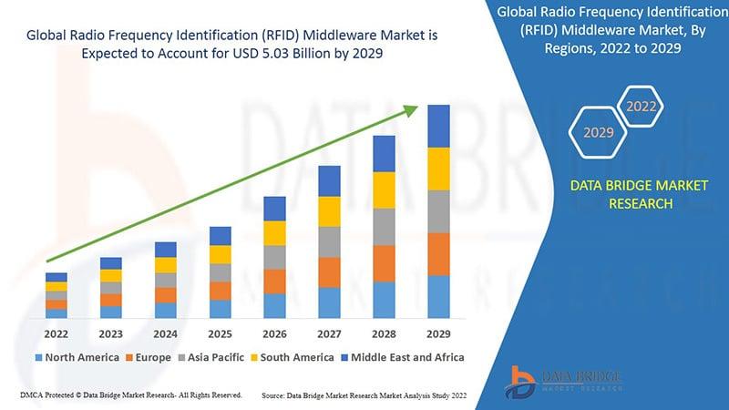 Data Bridge Market Research analyses that the radio frequency identification (RFID) middleware market will exhibit a CAGR of 10.15% for the forecast period of 2022-2022 and is expected to reach the market value of USD 5.03 billion by 2029.