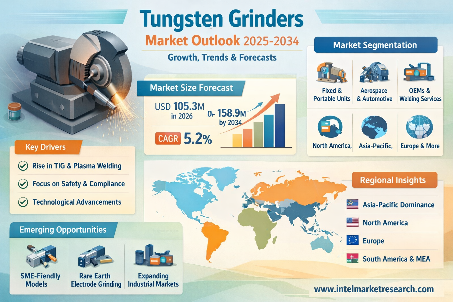 According to a new report from Intel Market Research, the global Tungsten Grinders market was valued at USD 98.7 million in 2025 and is projected to grow from USD 105.3 million in 2026 to reach USD 158.9 million by 2034, growing at a CAGR of 5.2% during the forecast period (2025–2034). This steady growth trajectory is underpinned by the expanding adoption of precision TIG and plasma arc welding across high-value manufacturing sectors, tightening workplace safety regulations, and continued technological innovation in electrode preparation equipment.