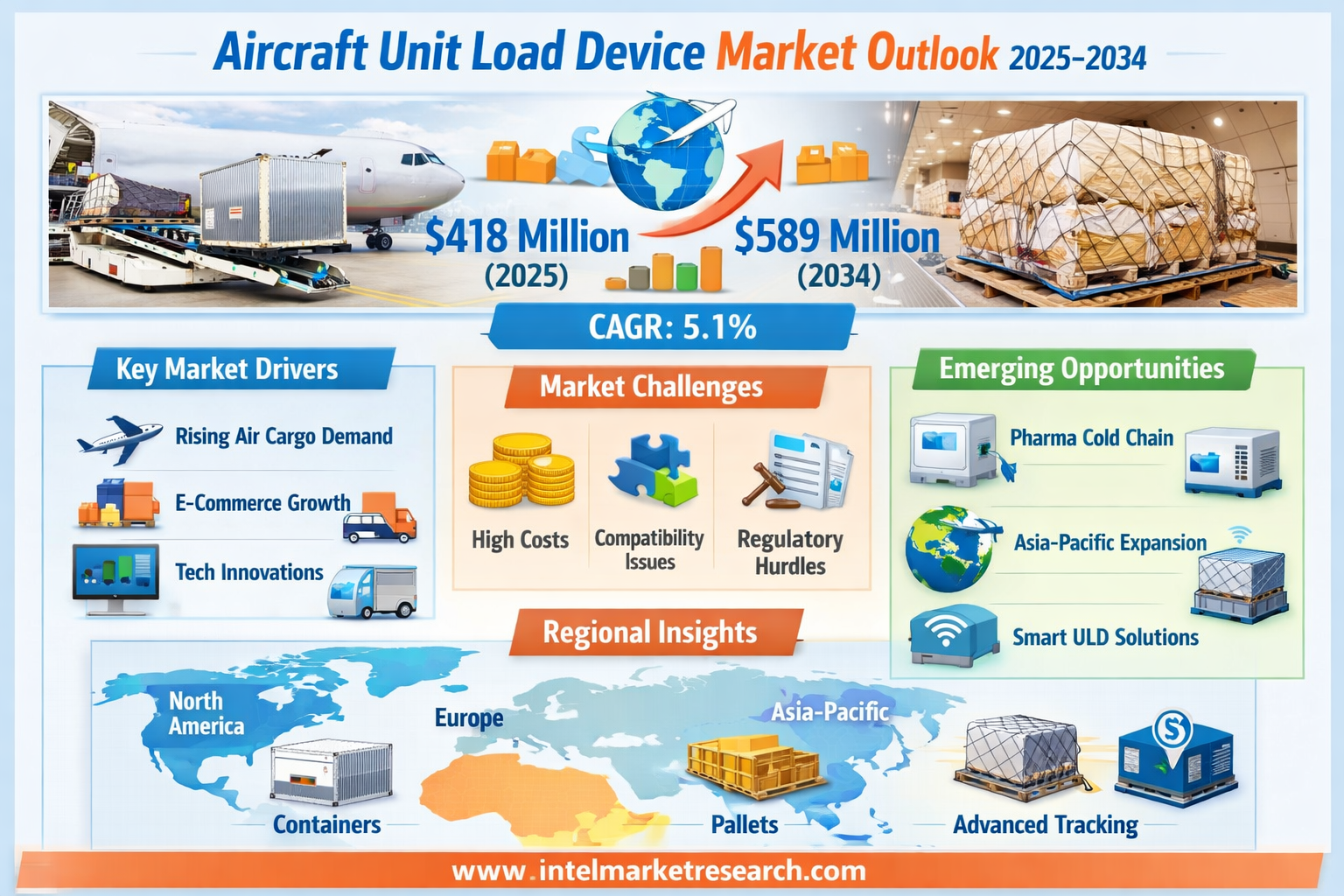According to a new report from Intel Market Research, the global Aircraft Unit Load Device market was valued at USD 418 million in 2025 and is projected to reach USD 589 million by 2034, growing at a steady CAGR of 5.1% during the forecast period (2026-2034). This growth is propelled by increasing air freight demand, expansion of e-commerce logistics, and technological advancements in cargo handling systems.