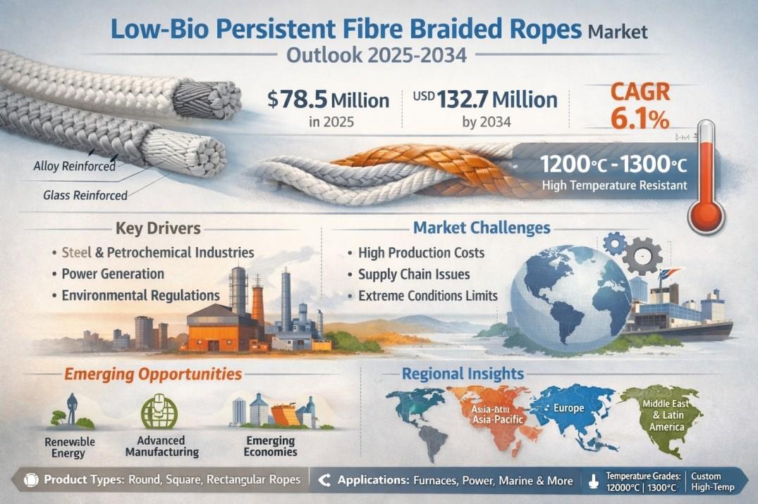 According to a new report from Intel Market Research, the global Low-bio Persistent Fibre Braided Ropes market was valued at USD 78.5 million in 2025 and is projected to reach USD 132.7 million by 2034, growing at a steady CAGR of 6.1% during the forecast period (2025-2034). This growth trajectory reflects increasing industrial demand for high-performance thermal insulation materials across energy-intensive sectors.