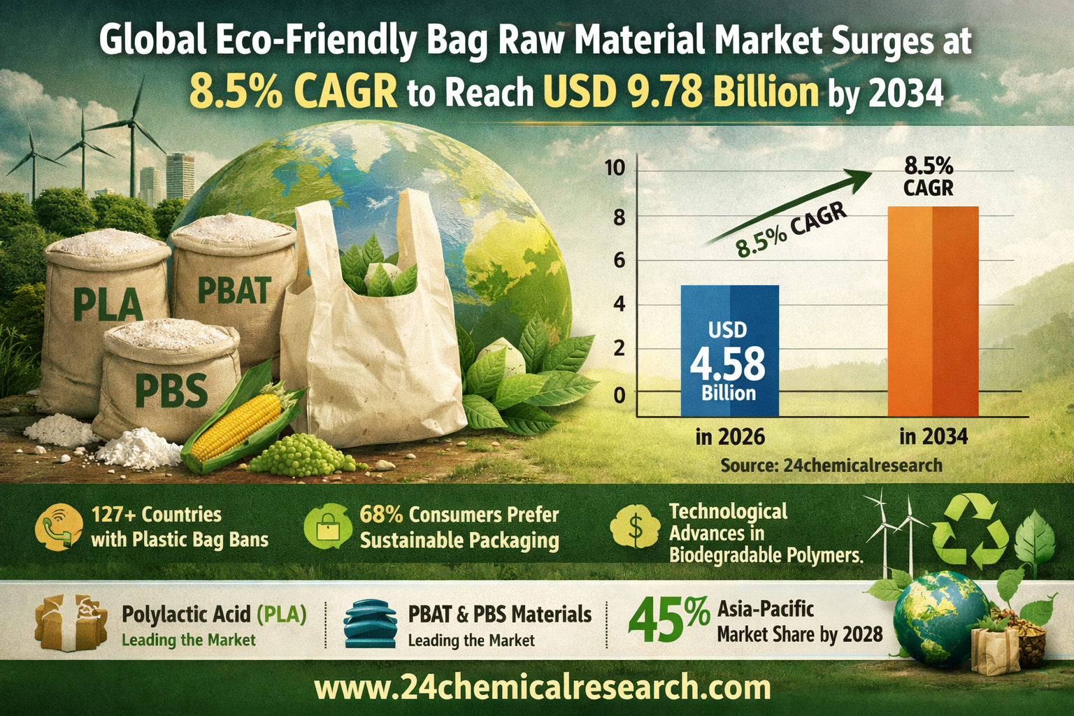 Global Eco-Friendly Bag Raw Material Market Surges at 8.5% CAGR to Reach USD 9.78 Billion by 2034