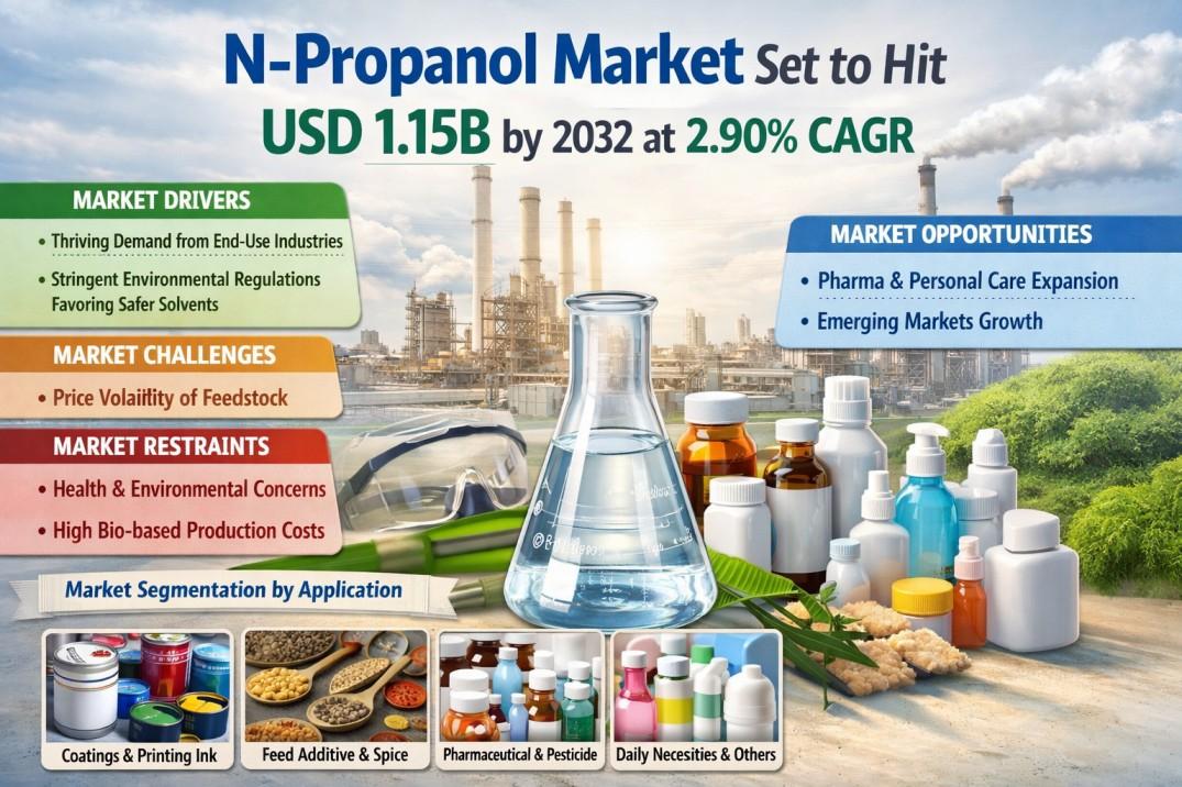 N-Propanol Market Set to Hit USD 1.15B by 2032 at 2.90% CAGR