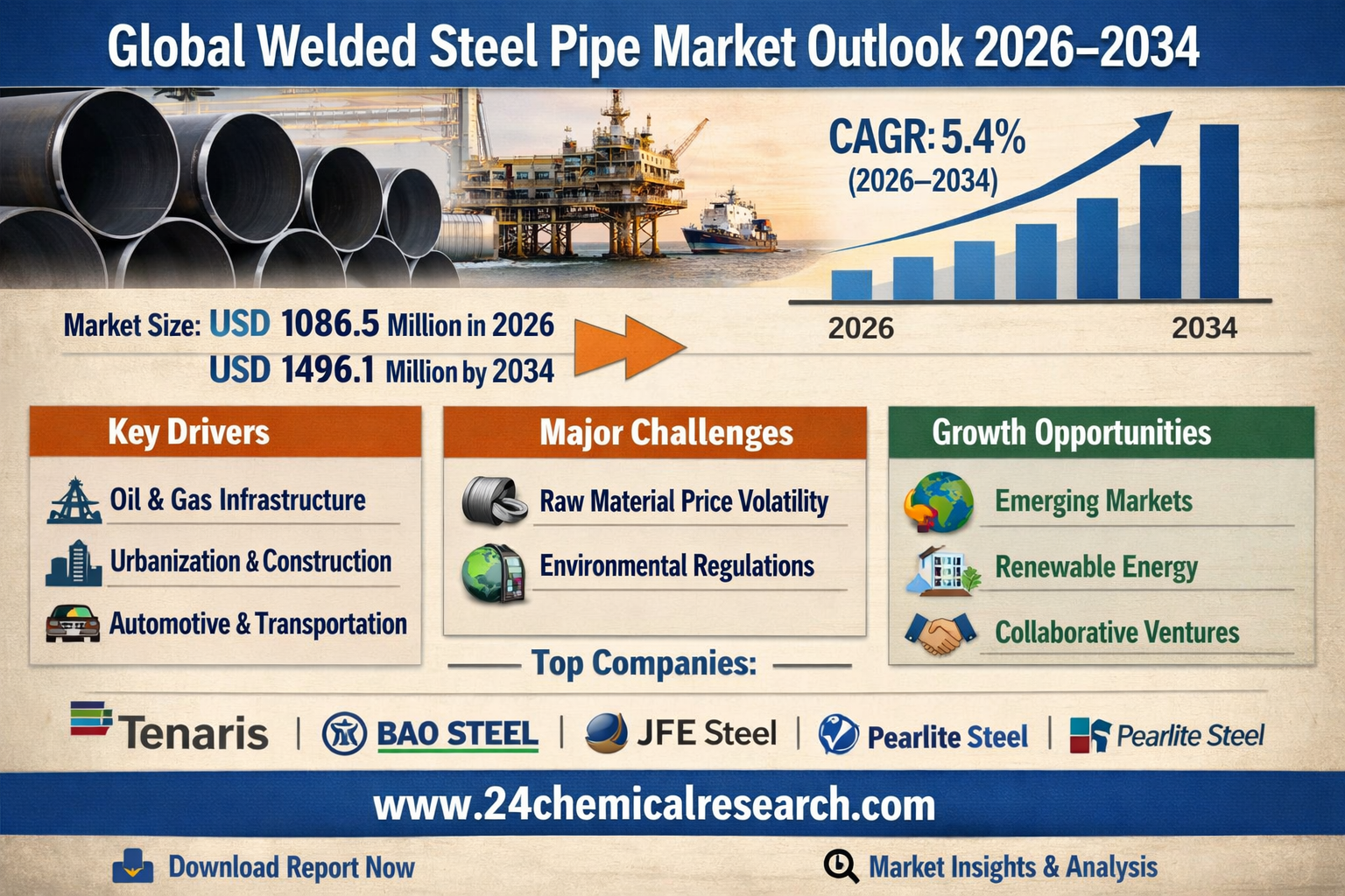 Global Welded Steel Pipe Market Growth Outlook 2026–2034: 5.4% CAGR to Reach USD 1496.1 Million