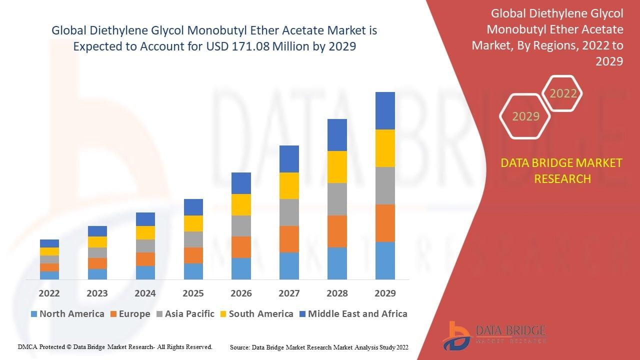 Data Bridge Market Research analyses that the Diethylene glycol monobutyl ether acetate market was valued at USD in 126.95 million 2021 and is expected to reach USD 171.08 million by 2029, registering a CAGR of 3.80% during the forecast period of 2022 to 2029.