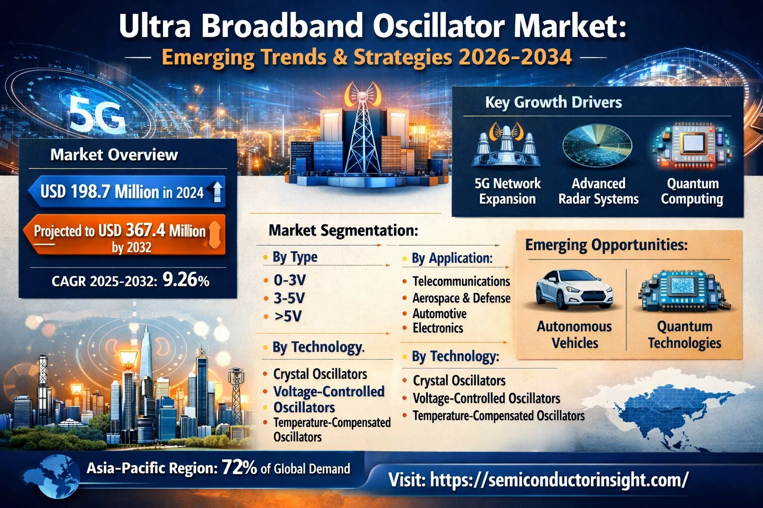 Global Ultra Broadband Oscillator Market, valued at USD 198.7 million in 2024, is poised for substantial growth, projected to reach USD 367.4 million by 2032. This expansion, driven by a compound annual growth rate (CAGR) of 9.26% during the forecast period 2026-2035, is detailed in a comprehensive new report published by Semiconductor Insight. The study underscores the critical role these precision frequency generation devices play in advancing high-speed communications, radar systems, and quantum computing applications.