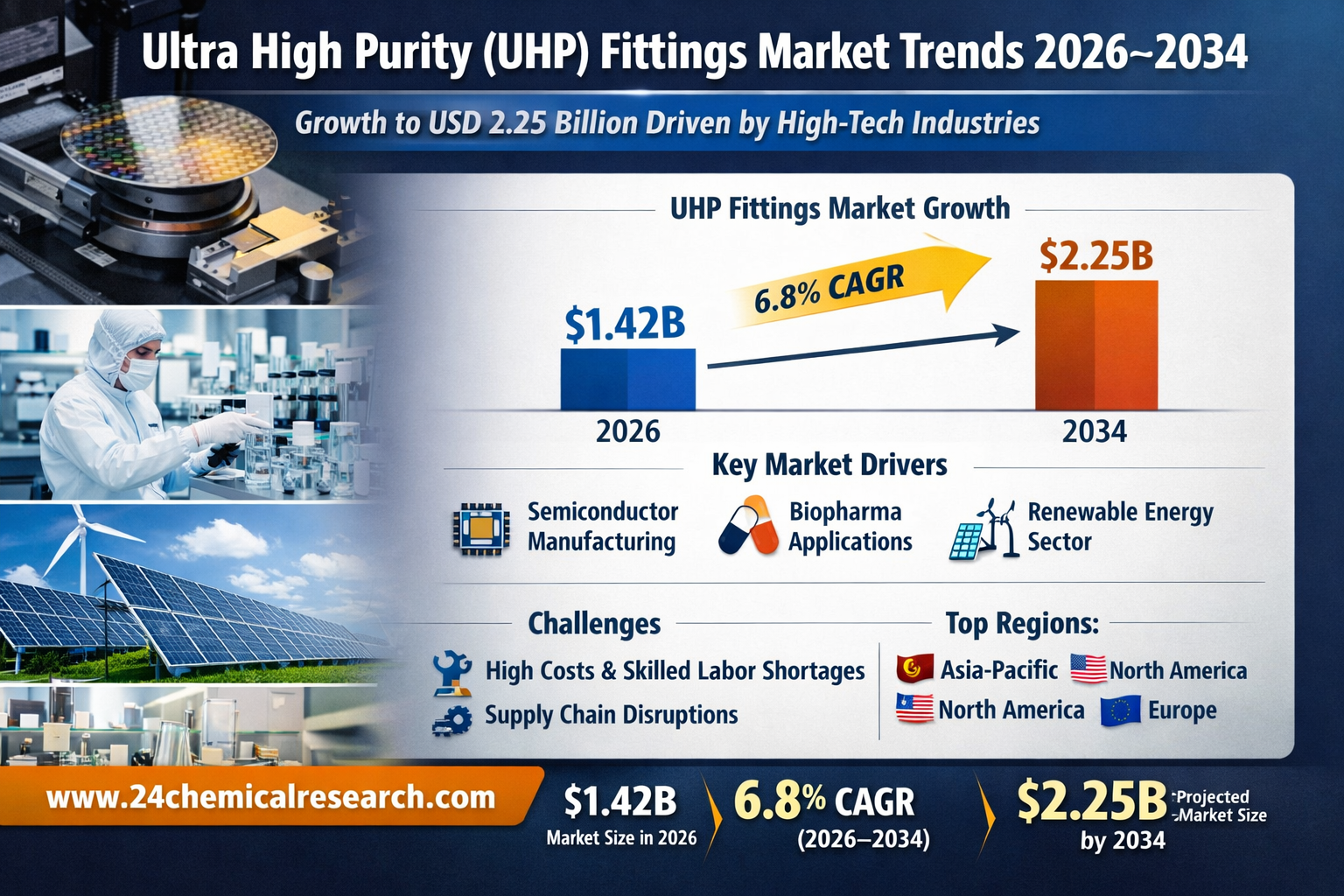 Global Ultra High Purity (UHP) Fittings Market continues to exhibit robust growth, with its valuation reaching USD 1.42 billion in 2026. According to recent industry analysis, the market is projected to expand at a CAGR of 6.8%, reaching approximately USD 2.25 billion by 2034. This steady growth is primarily fueled by escalating demand in semiconductor manufacturing, pharmaceutical applications, and renewable energy sectors, where contamination-free fluid handling systems are critical.