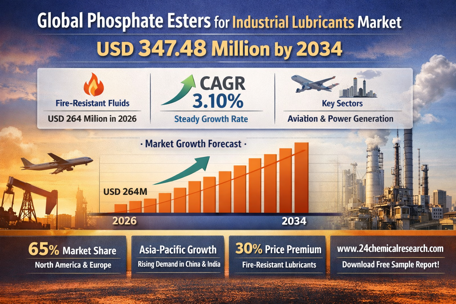 Global Phosphate Esters for Industrial Lubricants Market continues to demonstrate steady growth, with its valuation reaching USD 264 million in 2026. According to industry analysis, the market is projected to grow at a CAGR of 3.10%, reaching approximately USD 347.48 million by 2034. This growth is largely driven by increasing industrial safety requirements and the superior fire-resistant properties of phosphate esters, particularly in high-risk applications.