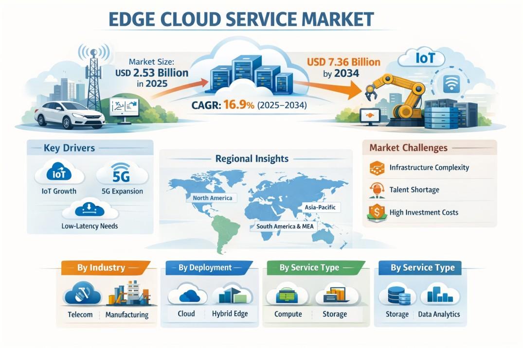 Edge Cloud Service Market Size to Hit USD 7.36 Billion by 2034 at 16.9% CAGR Driven by 5G and IoT Expansion