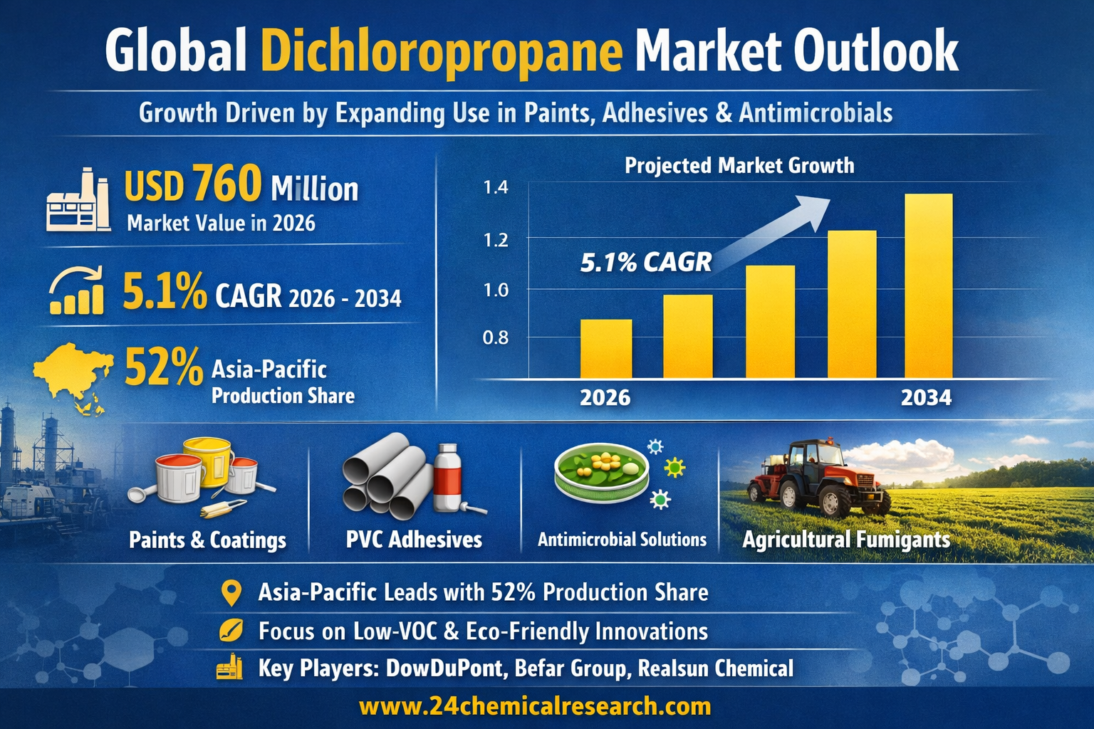 Global Dichloropropane Market Growth Driven by Expanding Use in Paints, Adhesives, and Antimicrobials