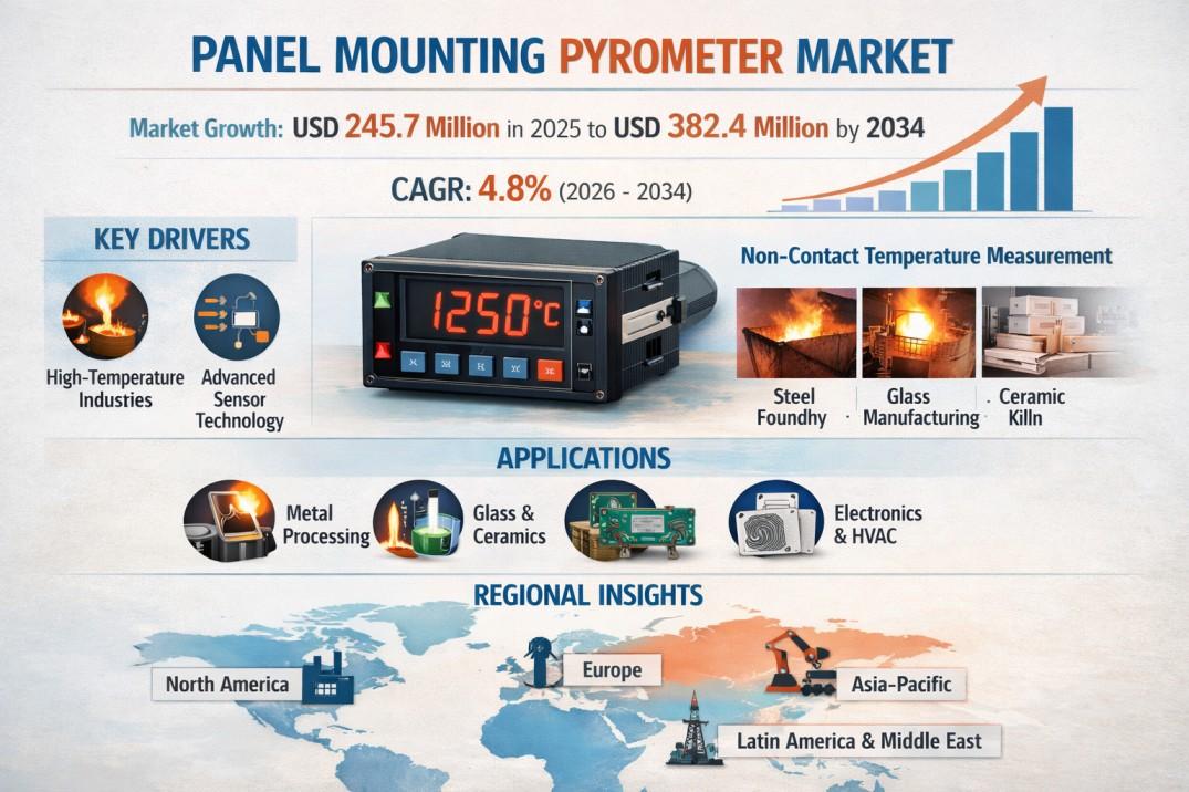 According to a new report from Intel Market Research, the global Panel Mounting Pyrometer market was valued at USD 245.7 million in 2025 and is projected to reach USD 382.4 million by 2034, growing at a CAGR of 4.8% during the forecast period (2026–2034). This growth is propelled by increasing automation in industrial processes, expansion in high-temperature process industries such as metal processing, glass manufacturing, and ceramics, and advancements in sensing technologies with enhanced connectivity for Industrial IoT integration.
