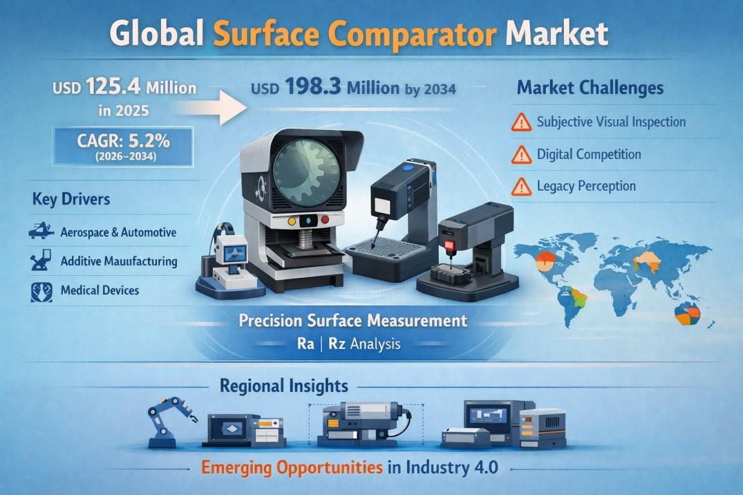According to a new report from Intel Market Research, the global Surface Comparator market was valued at USD 125.4 million in 2025 and is projected to reach USD 198.3 million by 2034, growing from USD 134.7 million in 2026 at a CAGR of 5.2% during the forecast period (2026–2034). This growth is propelled by stringent quality control needs in aerospace, automotive, and medical device manufacturing, advancements in precision engineering and miniaturization, and the expansion of additive manufacturing requiring precise surface texture control.