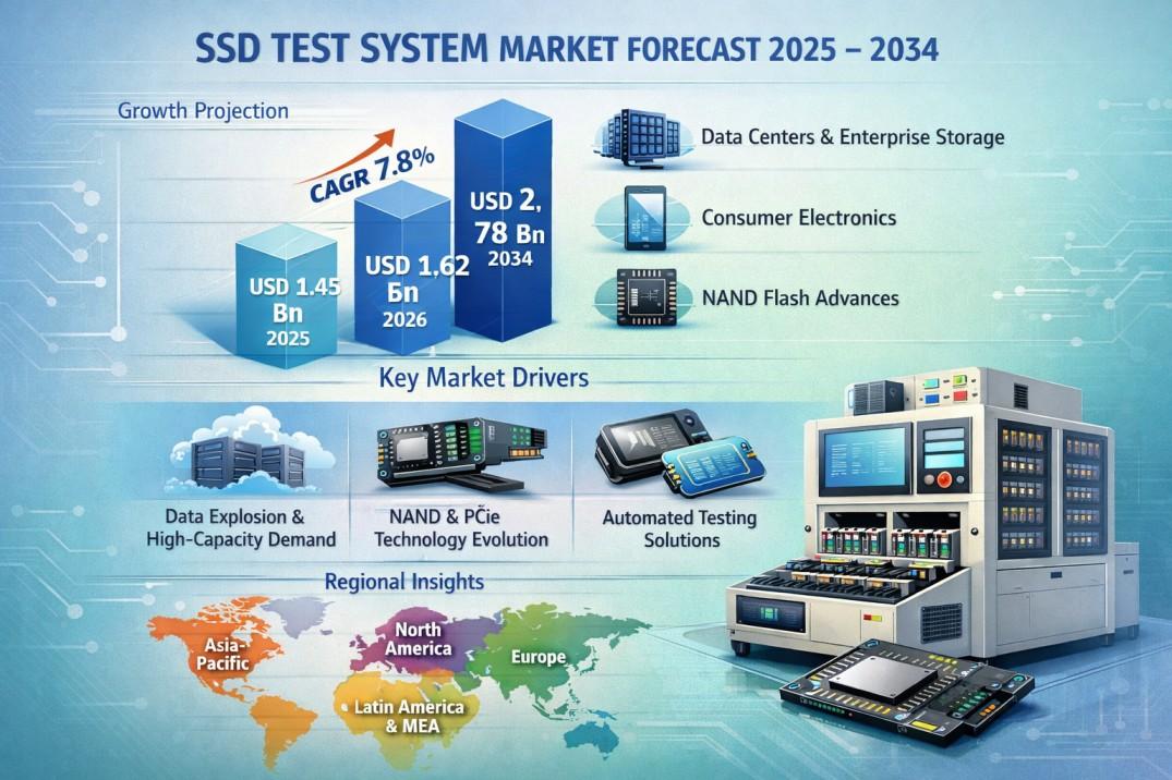 According to a new report from Intel Market Research, the global SSD Test System market was valued at USD 1.45 billion in 2025 and is projected to grow from USD 1.62 billion in 2026 to USD 2.78 billion by 2034, exhibiting a CAGR of 7.8% during the forecast period (2025–2034). This growth is propelled by increasing SSD adoption across data centers, enterprise storage, and consumer electronics sectors, rising demand for high-capacity storage solutions, and technological advancements in NAND flash memory.