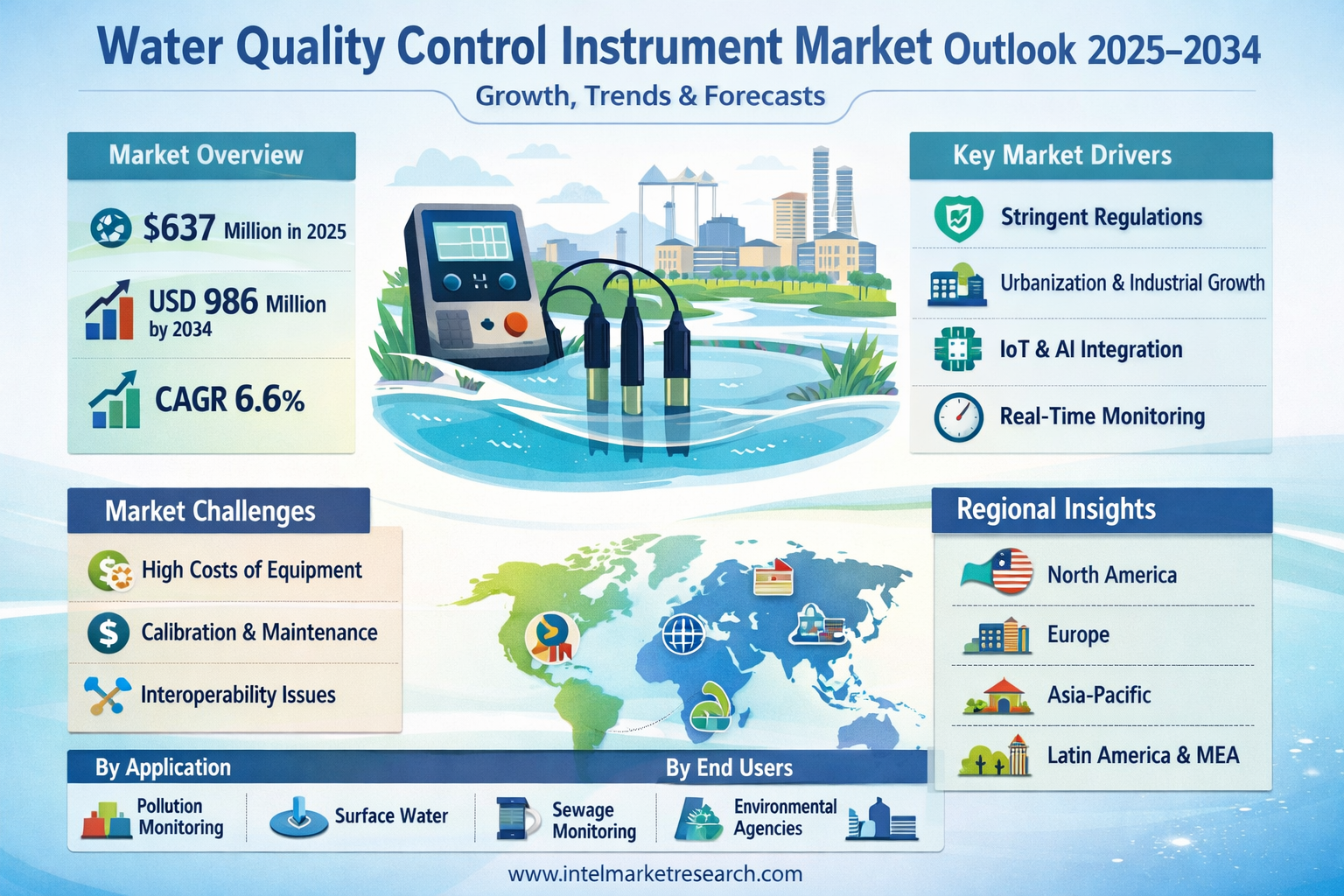 According to a new report from Intel Market Research, the global Water Quality Control Instrument market was valued at USD 637 million in 2025 and is projected to reach USD 986 million by 2034, growing at a CAGR of 6.6% during the forecast period (2025–2034). This growth is propelled by stringent environmental regulations, heightened focus on pollution control, rising demand for reliable real-time monitoring, and advancements in automation and remote sensing technologies.