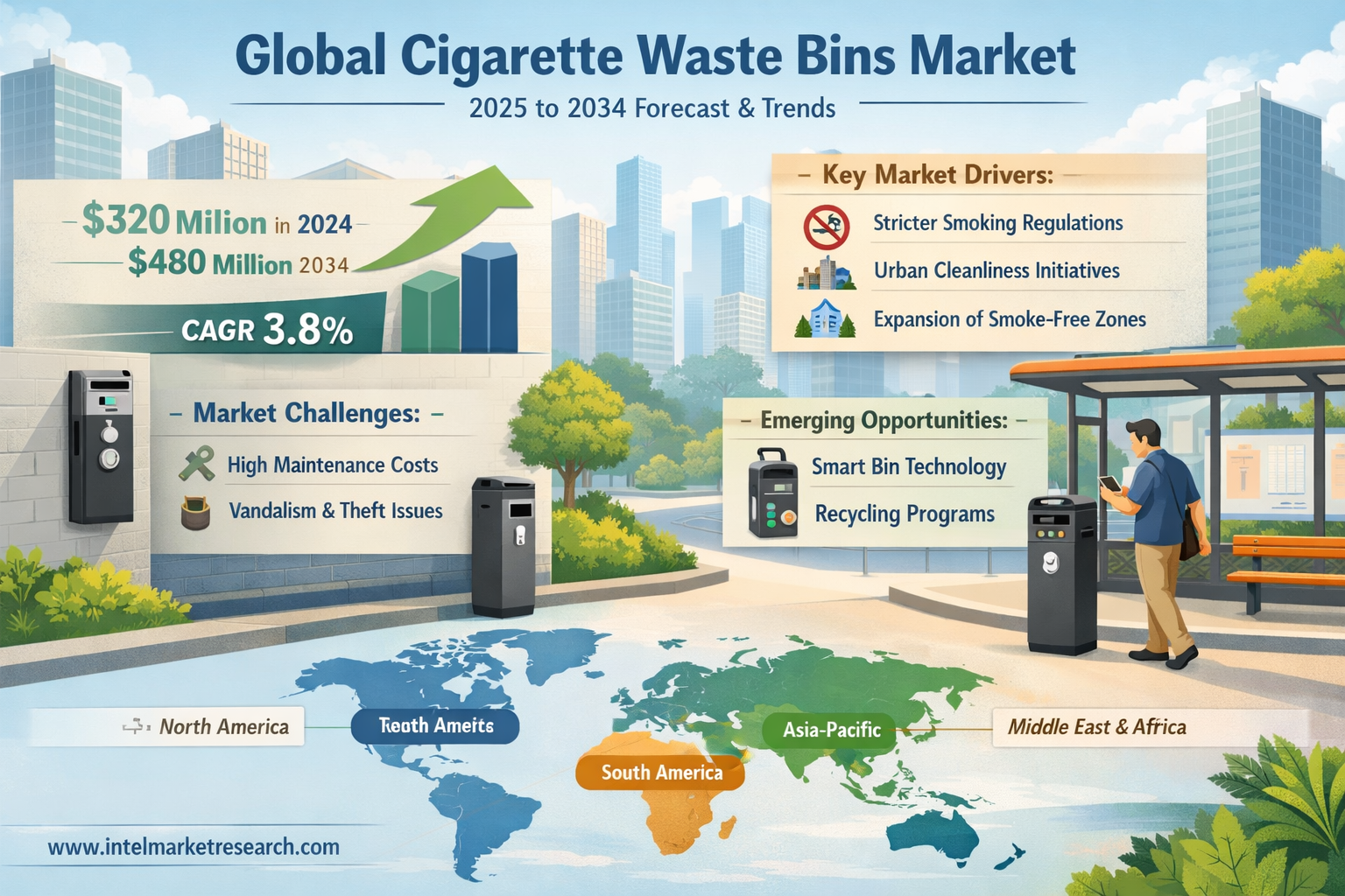 Global Cigarette Waste Bins Market Growth Driven by Urban Cleanliness Initiatives and Regulatory Policies to 2034
