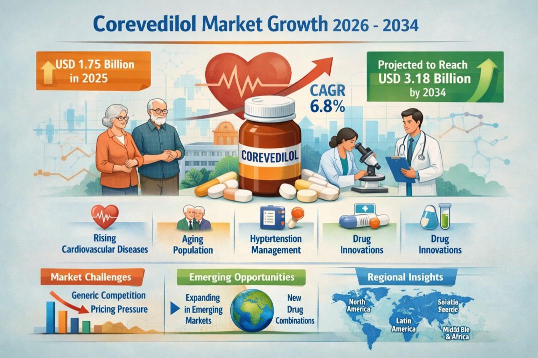 Global Carvedilol Market Valued at USD 1.75 Billion in 2025, Projected at 6.8% CAGR to 2034