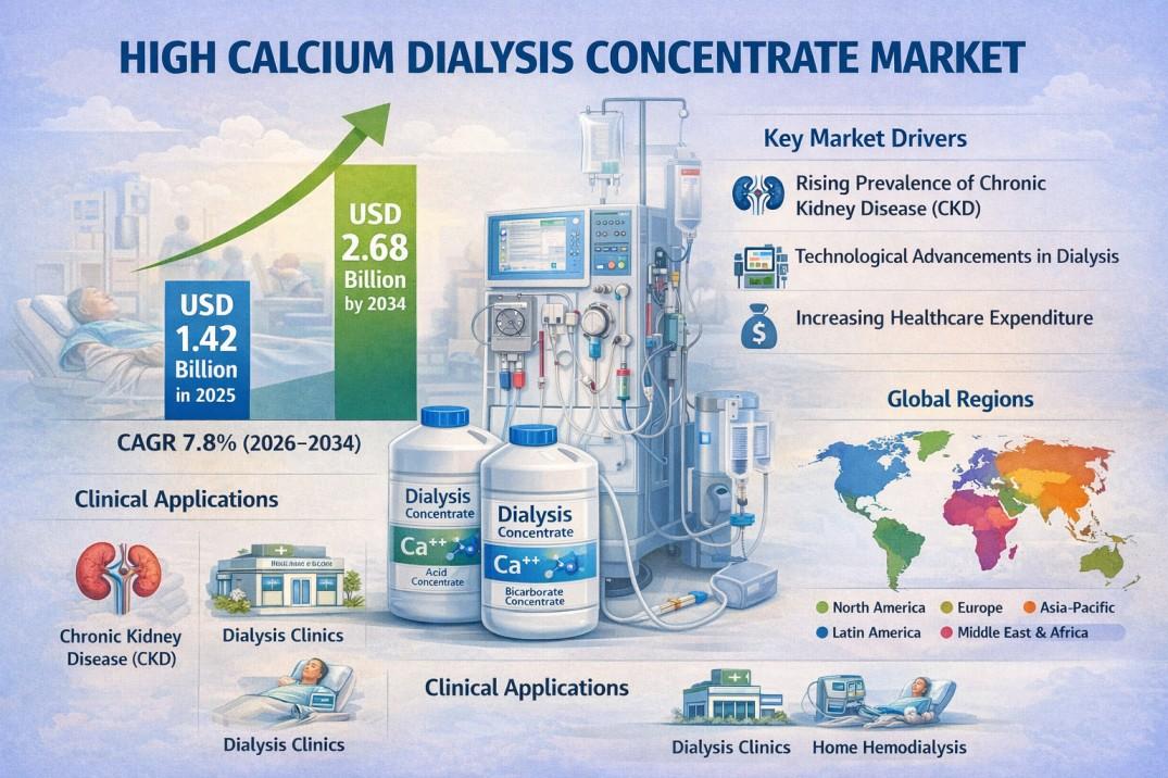 High Calcium Dialysis Concentrate Market Size to Hit USD 2.68 Billion by 2034 at a CAGR of 7.8%
