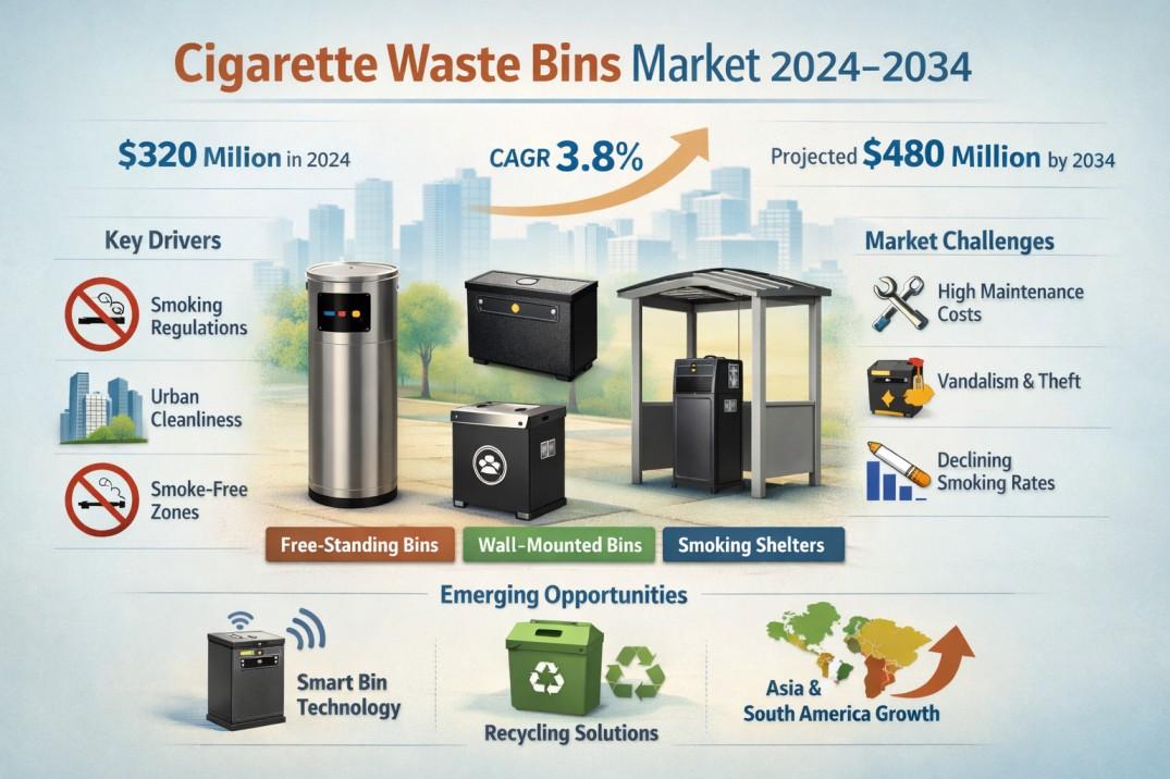 Global Cigarette Waste Bins Market Valued at USD 320 Million in 2024, Projected at 3.8% CAGR to 2034