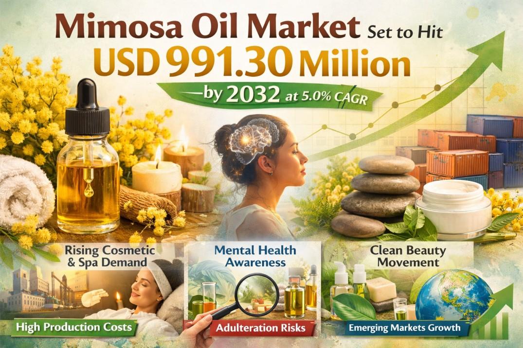 Mimosa Oil Market Set to Hit USD 991.30 Million by 2032 at 5.0% CAGR