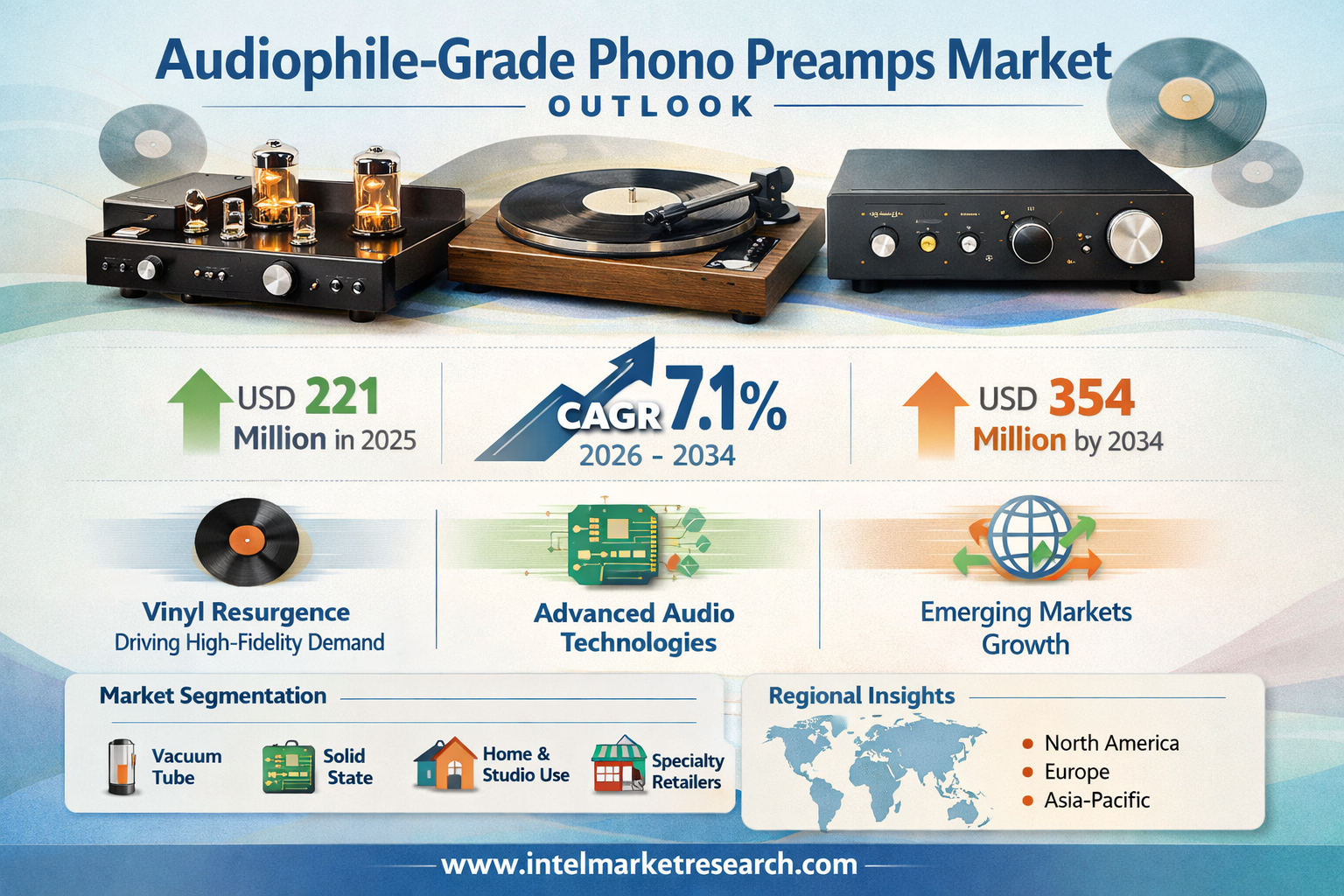 According to a new report from Intel Market Research, the global Audiophile-grade Phono Preamps market was valued at USD 221 million in 2025 and is projected to reach USD 354 million by 2034, growing at a robust CAGR of 7.1% during the forecast period (2026–2034). This growth is propelled by the continuous vinyl resurgence, increasing demand for high-fidelity analog playback systems, and ongoing technological advancements in precision audio circuitry.